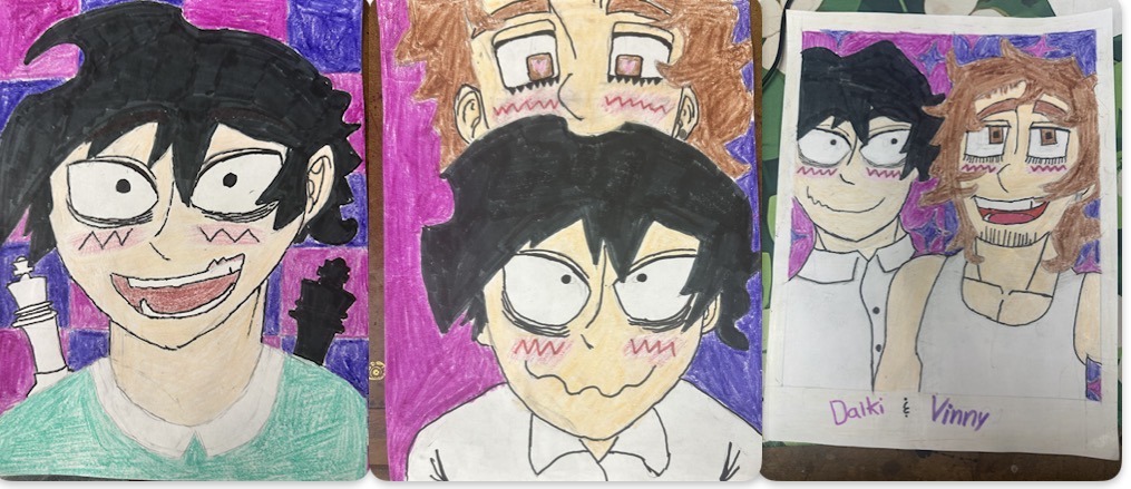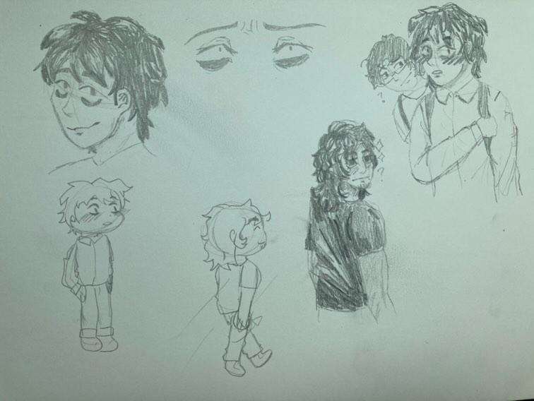 This is quite the project of mine. Walking you through my process here, first- I wanted to make a simple oneshot comic in the style of a doujin just... because. I wanted to do something for the sake of completing it. (this was like, a year before I ever made anything public of them.) Thought of a basic idea, "oh okay the stalker trope is a thing, thats kinda interesting for a short story- but man! thats boring as hell on its own... Uh, I dunno how about... Uuuuhhh the other guys is a stalker too- bingo, theres my idea." So I start drawing the thing, and as I'm doing it I'm sitting there goin'... yknow... I kinda like this concept. A lot. Like, too much to waste these characters on some stupid one shot, when this idea can probably be put in the oven for longer and woven into something a lot greater than what it is right now. I thought it had more potential, essentialy. So now I'm goin', "okay- what am I gonna do with this then? Comics are farrr too strenouous and need wayyy too much consitency for someone with ADHD as severe as me. I need something that I can work on passively... taking on the story in short chunks to eventually put together a greater puz- OH my god wait a minute I have renpy-" So, cross off comic, and relabel; visual novel. In this 10%(?) drafted visual novel, whose file is collecting a nice thick layer of dust on my pc right now (I only opened it to see how far the story evolved, the story changed quite a bit! You're never seeing those drafts... eugh...) you play as a third person point of view who mainly follows Daiki's story, which is already an odd choice for a visual novel that I was very dead set on for some reason? As he gets through school, meets Vincenzo, finally gets a life, etc etc. Then I dropped it because wow visual novels are work- combined with a still not fully developed story, it was a recipe for disaster. That's one summer down.